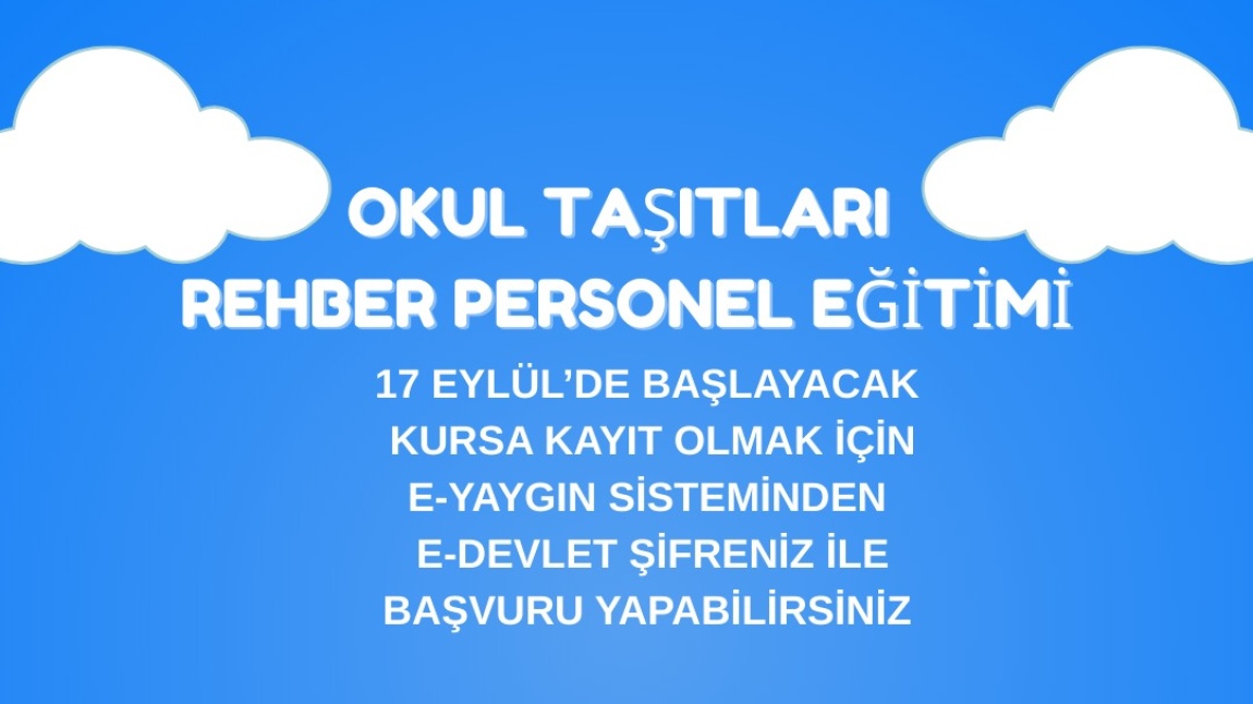 OKUL TAŞITLARI REHBER PERSONEL EĞİTİMİ KURS KAYITLARI BAŞLADI!Kursa kayıt olmak için e-yaygın sisteminden e-devlet şifreniz ile...